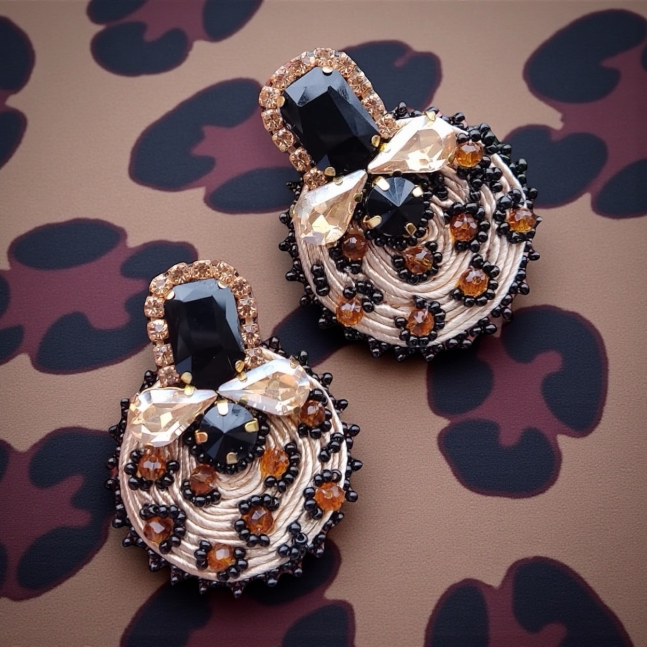 Special handcrafted silk cord earrings with beautiful crystals imported all the way from Venezuela.